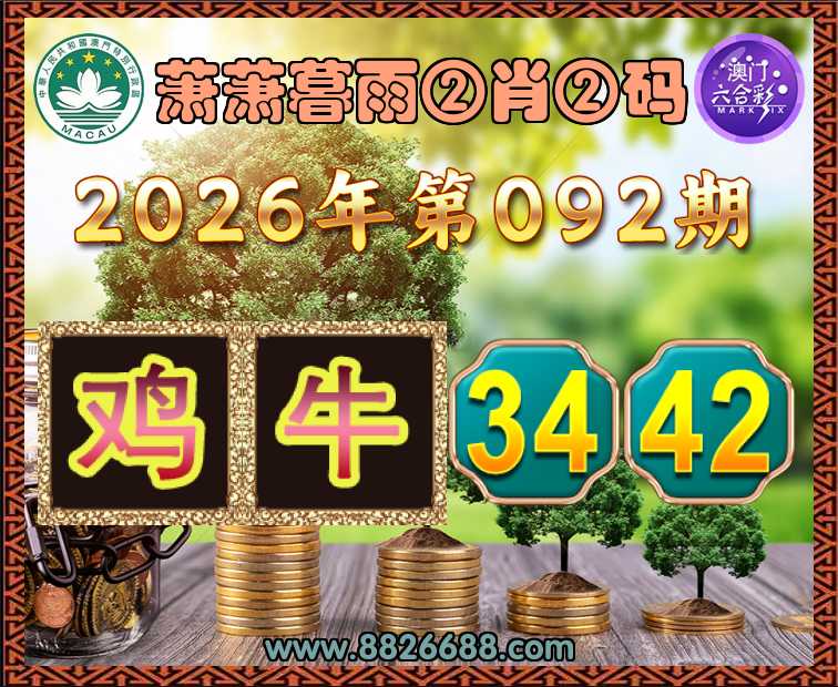 092期: 萧萧暮雨 🏆②肖②码🏆【鸡】【34.42】开:牛06准上榜高手